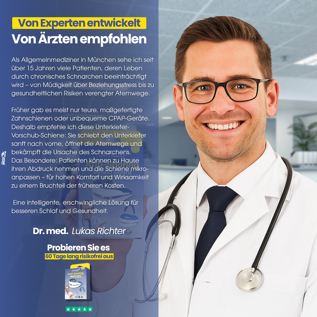 Das neueste Modell von Ormoza™ wurde strengen Tests unterzogen und von zahlreichen Schlafspezialisten, Pneumologen und HNO-Ärzten sowie deren Patienten empfohlen.