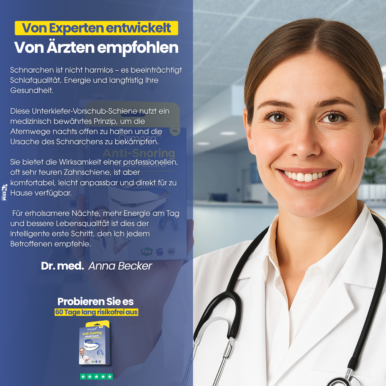 Ihre Rückmeldungen zeigen eine deutliche Verringerung von Schnarchen und Apnoe-Episoden, was insbesondere die Schlafqualität, das Energieniveau während des Tages und die Herz-Kreislauf-Gesundheit verbessert.