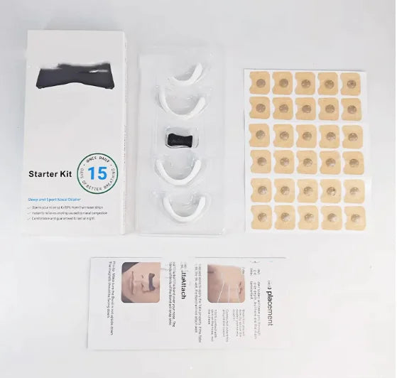 The C6 Nasal Breathing Dilators Starter Kit is designed to enhance airflow and improve breathing comfort. This easy-to-use kit helps open nasal passages, reducing snoring and congestion, and promoting better sleep. Perfect for those seeking relief from nasal blockages or looking to optimize their breathing during physical activities. Ideal for both day and night use.